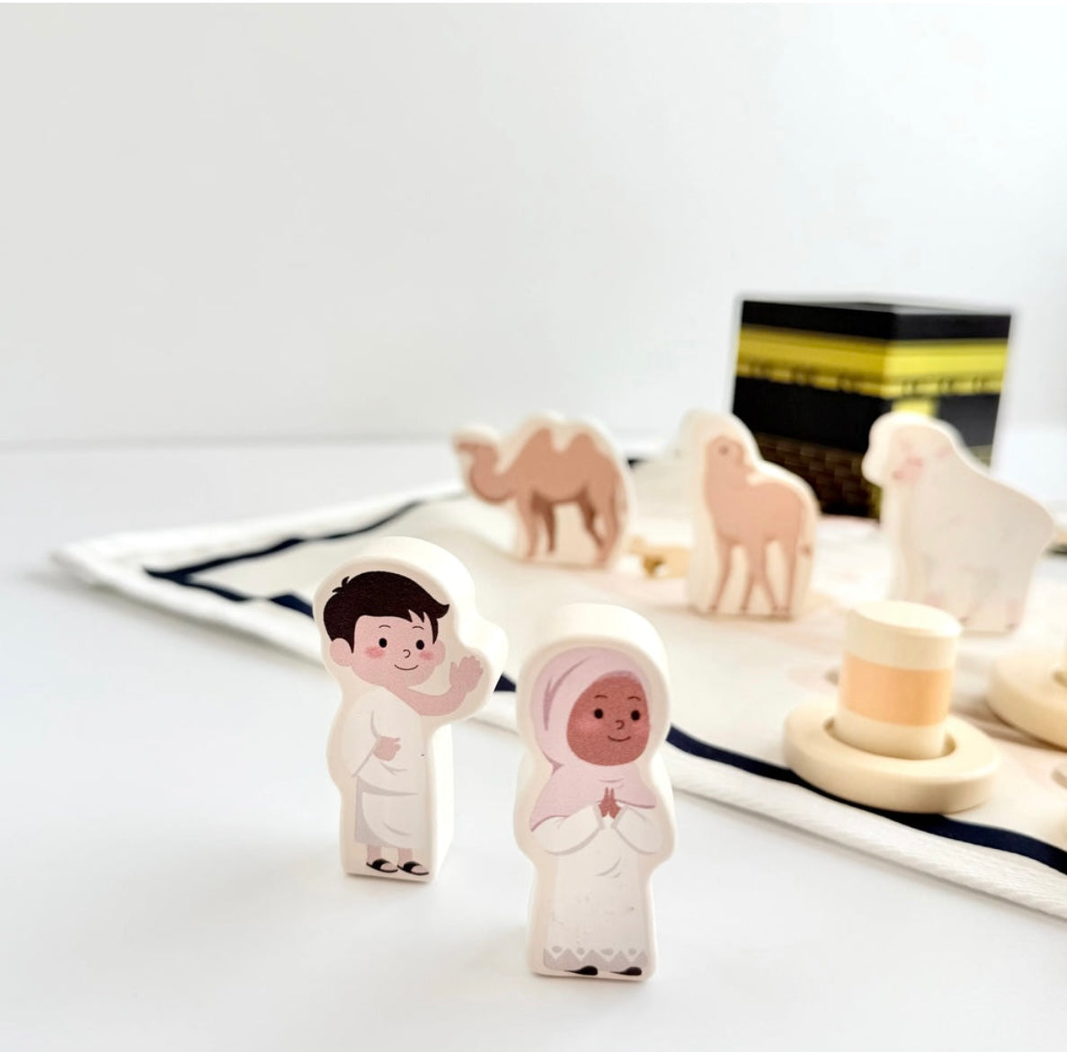 Erlebe mit deinem Kind den Hajj auf spielerische Weise! Dieses Set enthält 17 Holzblöcke, die die wichtigsten Stationen der Pilgerreise zeigen, und einen weichen Baumwollteppich, der die Route abbildet. Perfekt, um Wissen über den Hajj ganz natürlich und kindgerecht zu entdecken.
